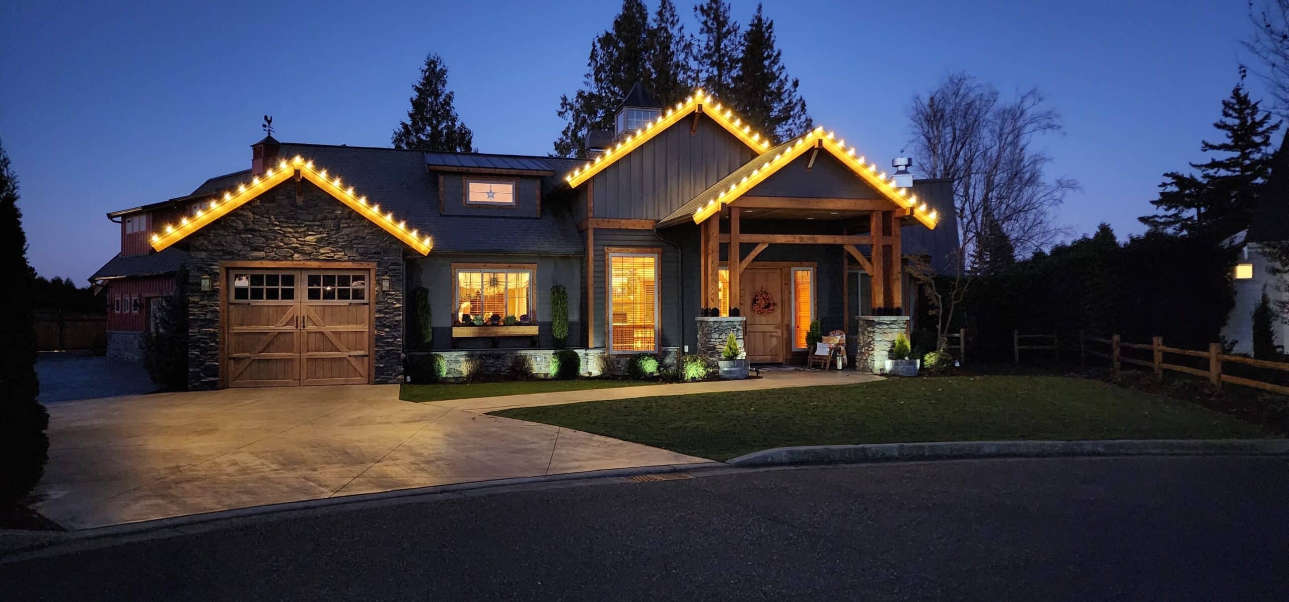 It’s that time of year again! The sun is fading, and the Christmas lights are coming out! Though, we all know how frustrating it can be to pull tangled balls of lights out of storage and try to get them hung! That’s where Whatcom Landscapes can help you out. Each year we hang, remove, and store Christmas lighting systems for many of our wonderful customers. This allows you to indulge in all the beauty that you crave in the evenings leading up to Christmas while removing all the dreaded hassle that is involved. Using commercial grade wiring and lights, we custom build elegant and reliable lighting systems to suit each customer’s specific needs. Everything from simple stranded lights to glowing reindeer and snowmen, we have you covered. Please do not hesitate to reach out if you wish to inquire about our lighting services. We would be ecstatic to have the opportunity to work with you!