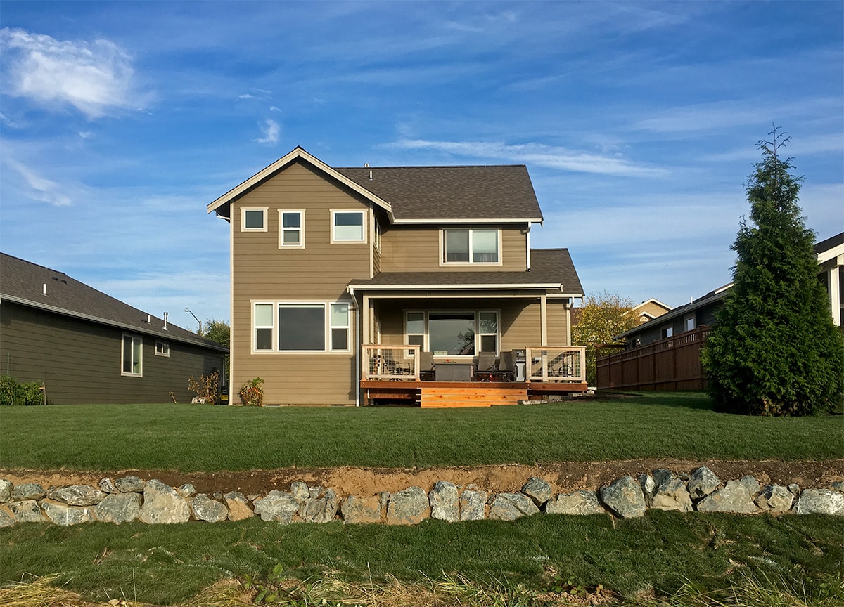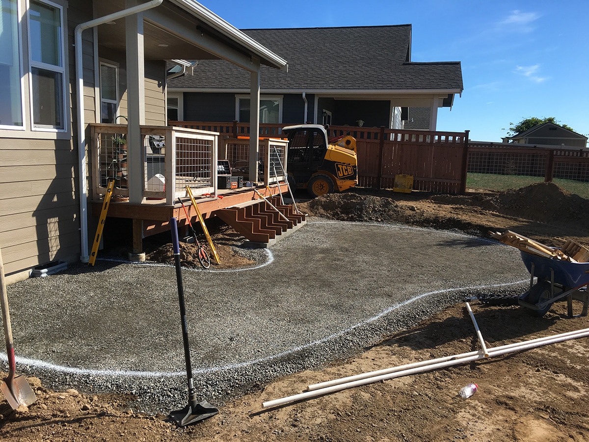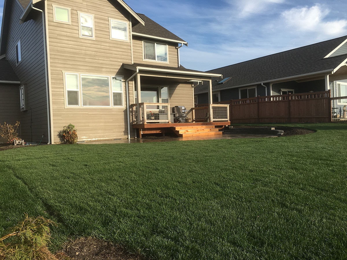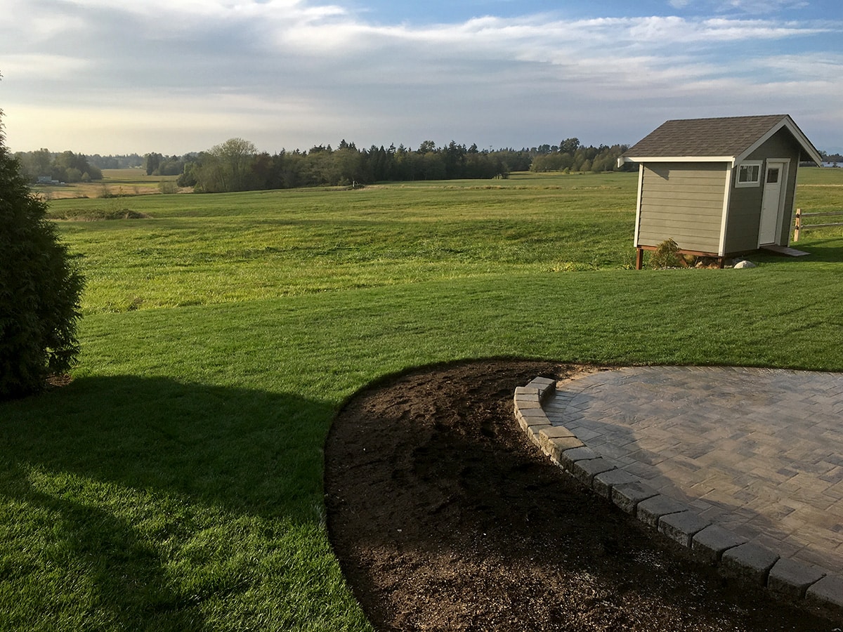 This new home needed more outdoor living space to enjoy the amazing pastoral views! The lawn also had to be replaced and graded due to poor drainage. Since the deck was surrounded with hog wire fence, part of this had to be removed and steps added to conjoin the new patio. With 10’ wide steps, there is a much more open feel. To accommodate grade changes, a small garden wall had to be added on one side of the patio.