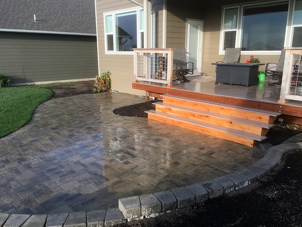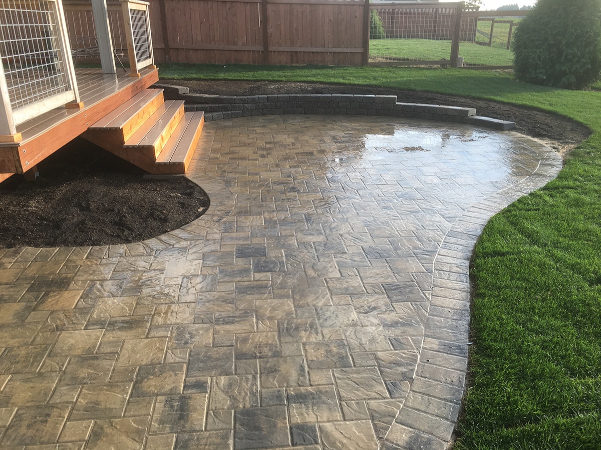 - Pacific Slate interlocking paver patio, Sandalwood blend